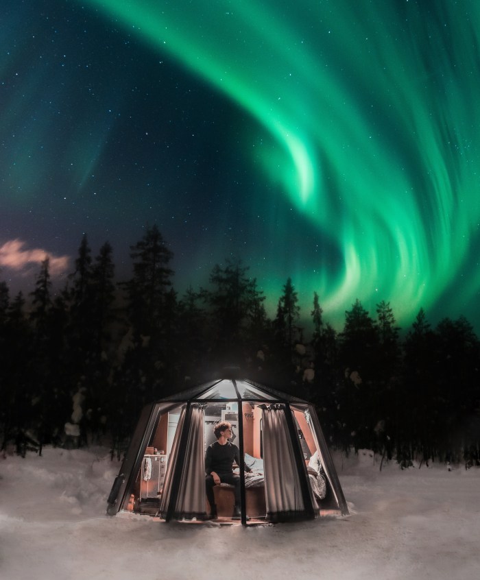 Think about this: A solitary place in the middle of a frozen lake during the Lappish winter, plus 21 degrees celsius inside that let you stay lazy in your glass igloo, minus 26 degrees celsius outside, a spectacular view from your bed of the wild nature just some meters from you. And when the polar night comes the Northern Lights spectacle begins just in front of you. At least this was my hope.